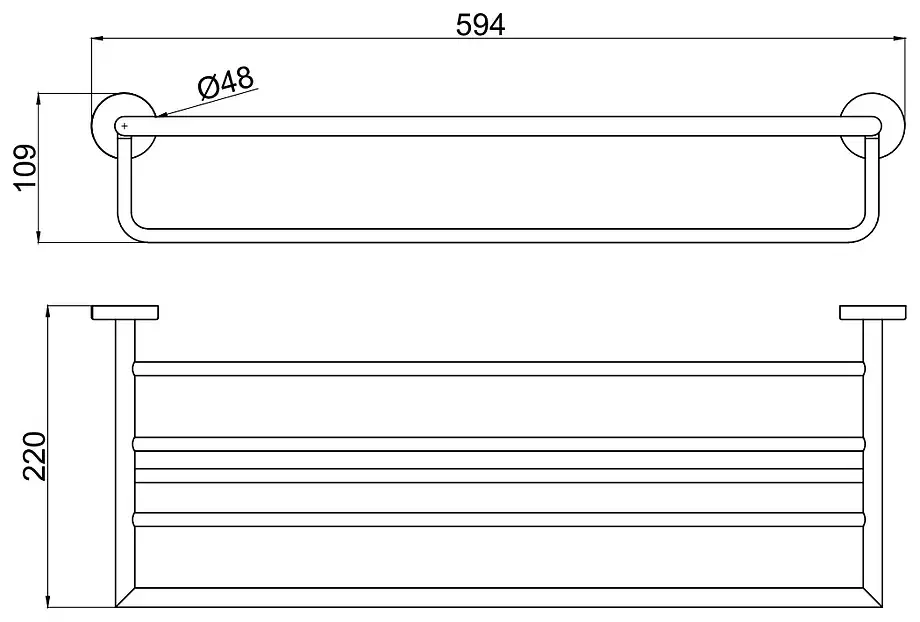 6.31014-BN PRIORITY Полка для полотенец, 594мм, вылет 220мм, браш.никель (265430)