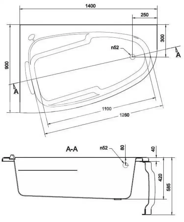 Ванна асимметричная JOANNA 140×90 левая ультра белый
